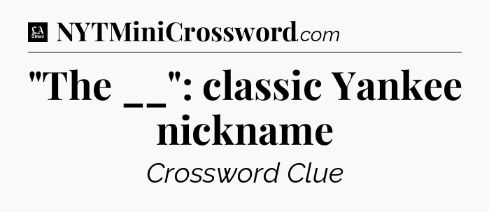 The clue “”The __”: classic Yankee nickname” most recently appeared in a LA Times Crossword on November 10, 2019.