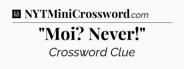 The clue “”Moi? Never!”” most recently appeared in a LA Times Crossword on November 12, 2023.