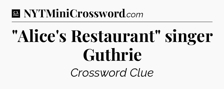 The clue “”Alice’s Restaurant” singer Guthrie” most recently appeared in a LA Times Crossword on November 14, 2017.