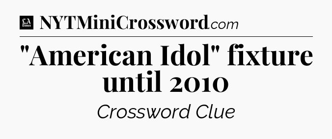 The clue “”American Idol” fixture until 2010″ most recently appeared in a LA Times Crossword on November 15, 2020.