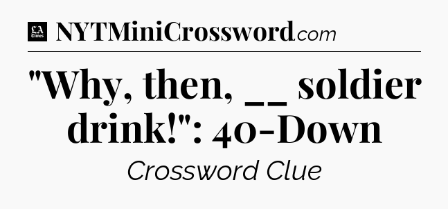 The clue “”Why, then, __ soldier drink!”: 40-Down” most recently appeared in a LA Times Crossword on November 17, 2019.