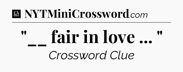 The clue “”__ fair in love … “” most recently appeared in a LA Times Crossword on November 17, 2020.