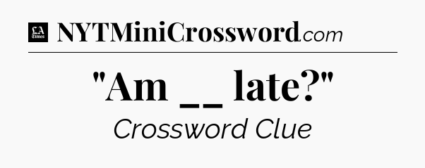 The clue “”Am __ late?”” most recently appeared in a LA Times Crossword on November 19, 2022.