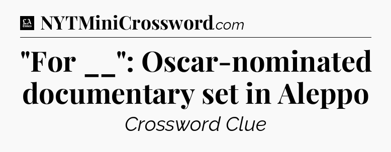 The clue “”For __”: Oscar-nominated documentary set in Aleppo” most recently appeared in a LA Times Crossword on November 19, 2022.
