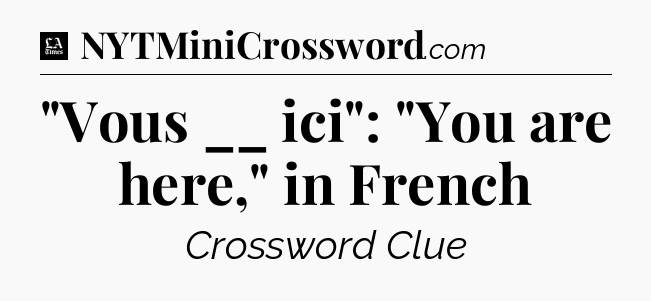 The clue “”Vous __ ici”: “You are here,” in French” most recently appeared in a LA Times Crossword on November 21, 2022.