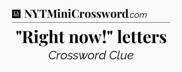 The clue “”Right now!” letters” most recently appeared in a LA Times Crossword on November 23, 2020.