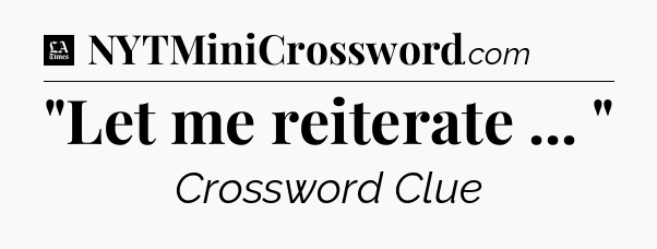The clue “”Let me reiterate … “” most recently appeared in a LA Times Crossword on November 23, 2021.