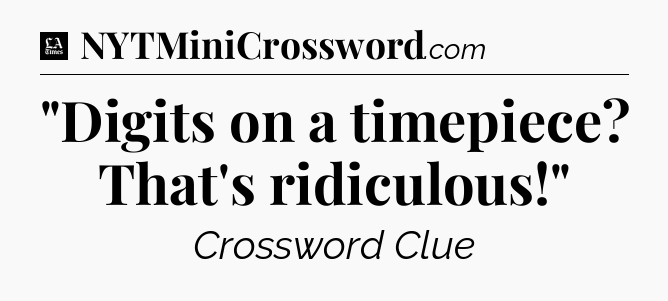 The clue “”Digits on a timepiece? That’s ridiculous!”” most recently appeared in a LA Times Crossword on November 23, 2022.