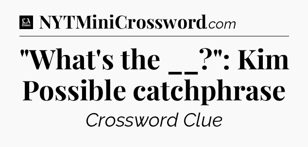 The clue “”What’s the __?”: Kim Possible catchphrase” most recently appeared in a LA Times Crossword on November 25, 2023.