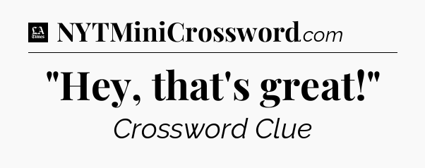 The clue “”Hey, that’s great!”” most recently appeared in a LA Times Crossword on November 28, 2021.