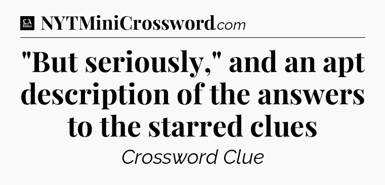 The clue “”But seriously,” and an apt description of the answers to the starred clues” most recently appeared in a LA Times Crossword on November 29, 2023.