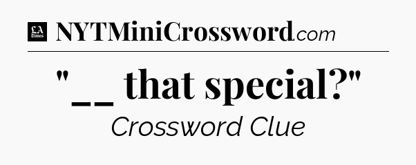 The clue “”__ that special?”” most recently appeared in a LA Times Crossword on November 3, 2018.