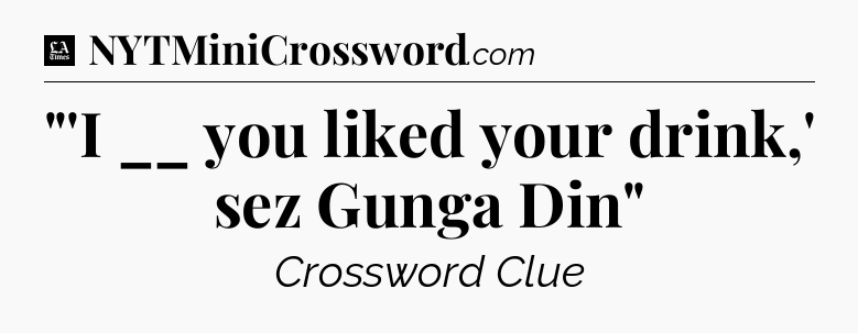 The clue “”‘I __ you liked your drink,’ sez Gunga Din”” most recently appeared in a LA Times Crossword on November 3, 2019.
