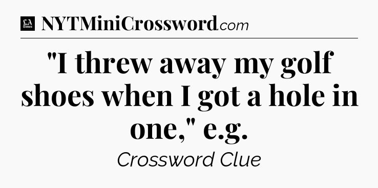 The clue “”I threw away my golf shoes when I got a hole in one,” e.g” most recently appeared in a LA Times Crossword on November 3, 2022.
