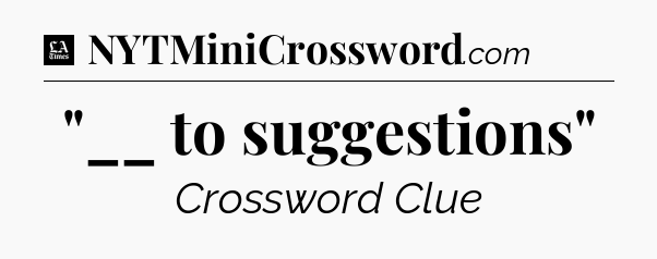 The clue “”__ to suggestions”” most recently appeared in a LA Times Crossword on November 6, 2018.