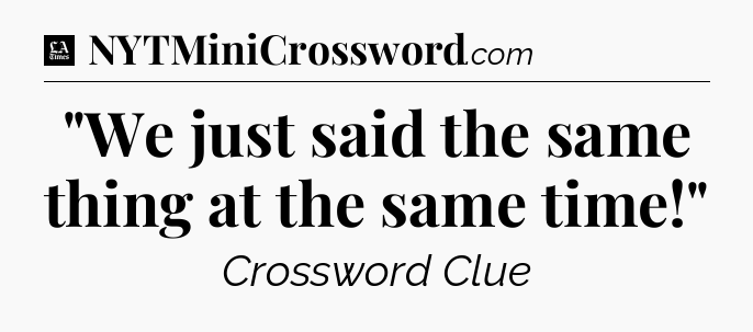 The clue “”We just said the same thing at the same time!”” most recently appeared in a LA Times Crossword on November 7, 2018.