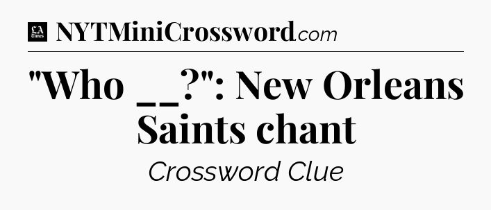 The clue “”Who __?”: New Orleans Saints chant” most recently appeared in a LA Times Crossword on November 8, 2019.