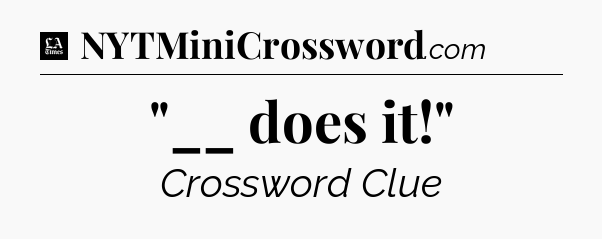 The clue “”__ does it!”” most recently appeared in a LA Times Crossword on December 11, 2017.