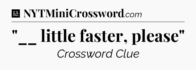 The clue “”__ little faster, please”” most recently appeared in a LA Times Crossword on December 14, 2019.