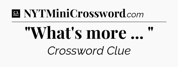 The clue “”What’s more … “” most recently appeared in a LA Times Crossword on December 14, 2020.
