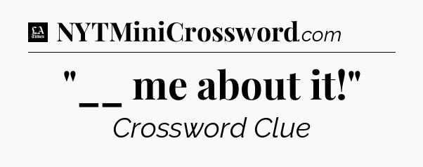 The clue “”__ me about it!”” most recently appeared in a LA Times Crossword on December 14, 2023.