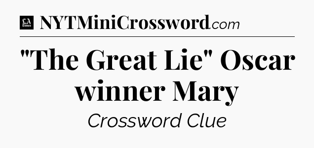 The clue “”The Great Lie” Oscar winner Mary” most recently appeared in a LA Times Crossword on December 14, 2024.