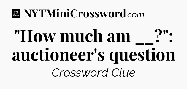 The clue “”How much am __?”: auctioneer’s question” most recently appeared in a LA Times Crossword on December 18, 2023.