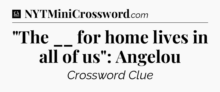 The clue “”The __ for home lives in all of us”: Angelou” most recently appeared in a LA Times Crossword on December 23, 2022.