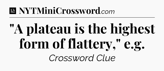What is the answer to the clue “”A plateau is the highest form of flattery,” e.g”?