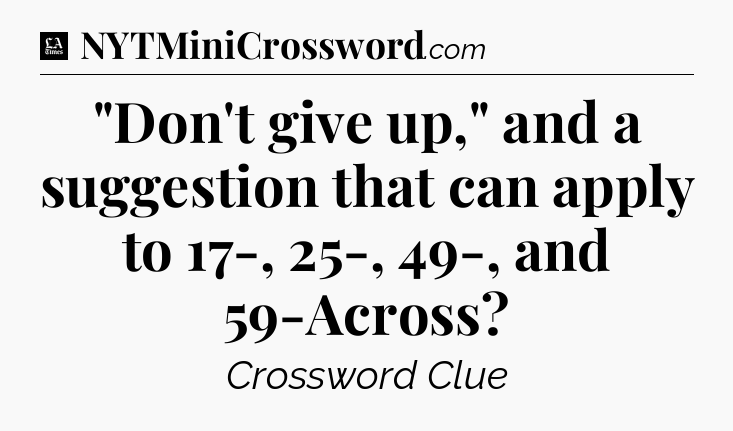 The clue “”Don’t give up,” and a suggestion that can apply to 17-, 25-, 49-, and 59-Across” most recently appeared in a LA Times Crossword on December 25, 2024.