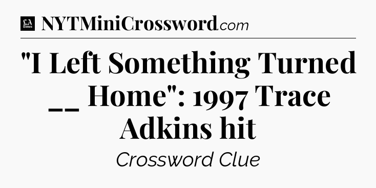 The clue “”I Left Something Turned __ Home”: 1997 Trace Adkins hit” most recently appeared in a LA Times Crossword on December 27, 2020.