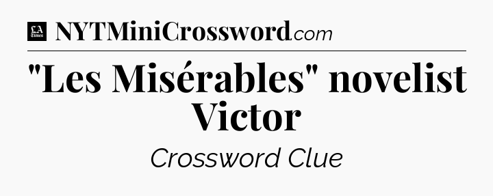 The clue “”Les Misérables” novelist Victor” most recently appeared in a LA Times Crossword on December 4, 2024.