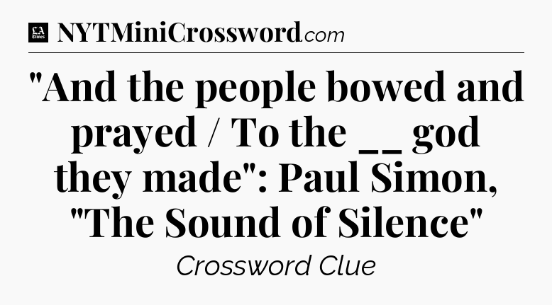 “”And the people bowed and prayed / To the __ god they made”: Paul Simon, “The Sound of Silence”” LA Times Crossword Clue: Frequently Asked Questions