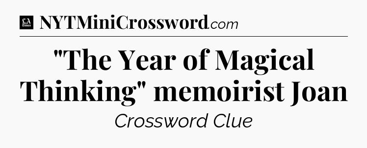 The clue “”The Year of Magical Thinking” memoirist Joan” most recently appeared in a LA Times Crossword on December 5, 2024.