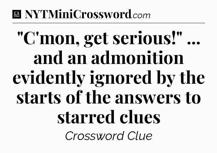 The clue “”C’mon, get serious!” … and an admonition evidently ignored by the starts of the answers to starred clues” most recently appeared in a LA Times Crossword on December 6, 2021.