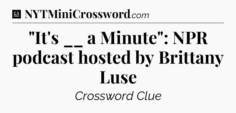 The clue “”It’s __ a Minute”: NPR podcast hosted by Brittany Luse” most recently appeared in a LA Times Crossword on December 6, 2023.
