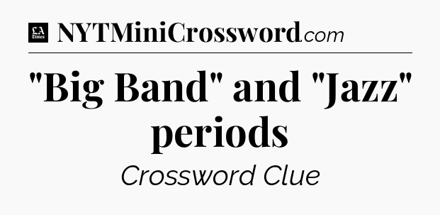 The clue “”Big Band” and “Jazz” periods” most recently appeared in a LA Times Crossword on December 9, 2019.