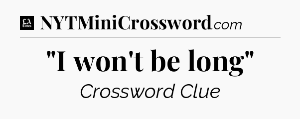 The clue “”I won’t be long”” most recently appeared in a LA Times Crossword on December 9, 2022.