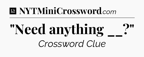 The clue “”Need anything __?”” most recently appeared in a LA Times Crossword on February 10, 2021.