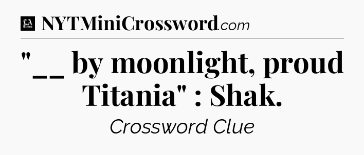 The clue “”__ by moonlight, proud Titania” : Shak” most recently appeared in a LA Times Crossword on February 11, 2022.