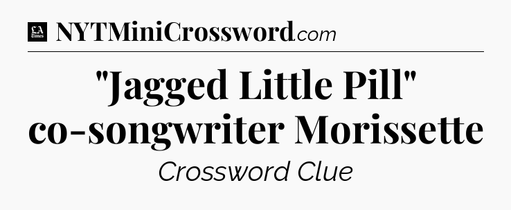 The clue “”Jagged Little Pill” co-songwriter Morissette” most recently appeared in a LA Times Crossword on February 12, 2020.