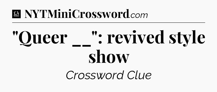 The clue “”Queer __”: revived style show” most recently appeared in a LA Times Crossword on February 13, 2020.