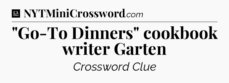 The clue “”Go-To Dinners” cookbook writer Garten” most recently appeared in a LA Times Crossword on February 14, 2024.