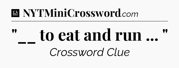 The clue “”__ to eat and run … “” most recently appeared in a LA Times Crossword on February 18, 2018.