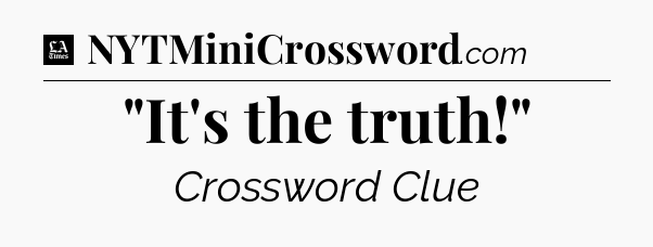 The clue “”It’s the truth!”” most recently appeared in a LA Times Crossword on February 18, 2022.
