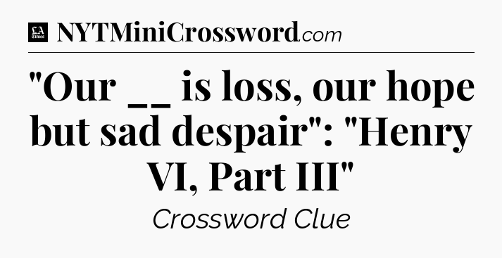 The clue “”Our __ is loss, our hope but sad despair”: “Henry VI, Part III”” most recently appeared in a LA Times Crossword on February 20, 2021.