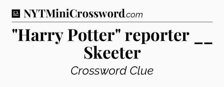 The clue “”Harry Potter” reporter __ Skeeter” most recently appeared in a LA Times Crossword on February 21, 2019.