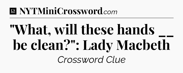 The Answer for “What, will these hands __ be clean?”: Lady Macbeth – LA Times Crossword Clue Solution is: