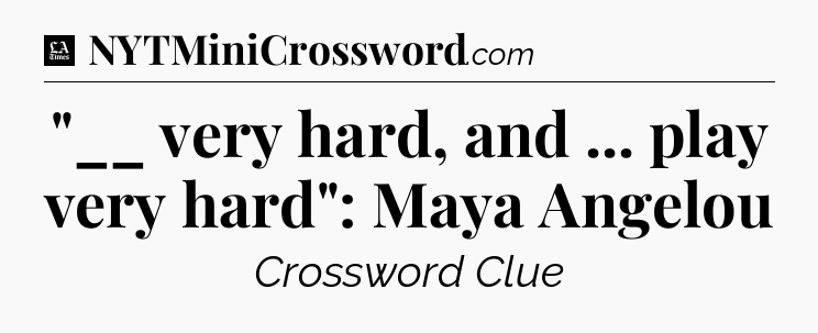 The clue “”__ very hard, and … play very hard”: Maya Angelou” most recently appeared in a LA Times Crossword on February 23, 2018.