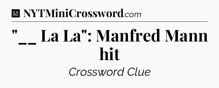 The clue “”__ La La”: Manfred Mann hit” most recently appeared in a LA Times Crossword on February 24, 2022.